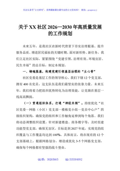 / 关于XX社区2026—2030年高质量发展的工作规划