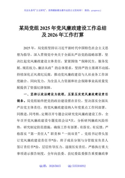 / 某局党组2025年党风廉政建设工作总结及2026年工作打算