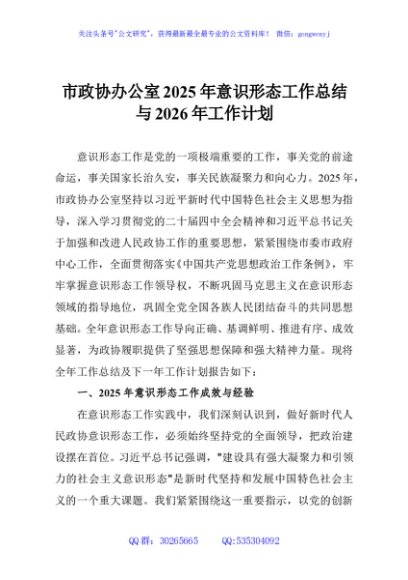 / 市政协办公室2025年意识形态工作总结与2026年工作计划