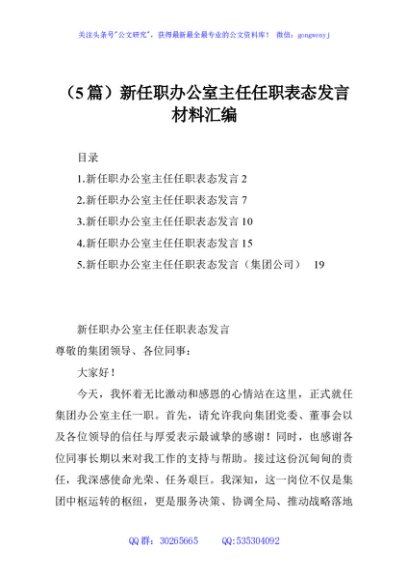 / (5篇)新任职办公室主任任职表态发言材料汇编