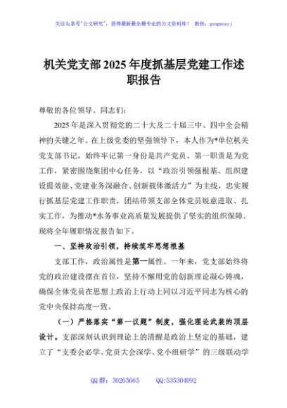 / 机关党支部2025年度抓基层党建工作述职报告