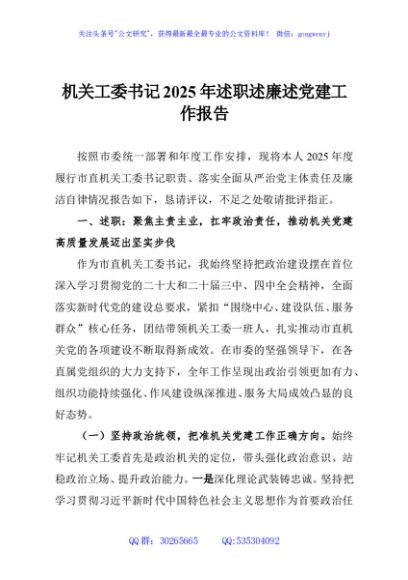 / 机关工委书记2025年述职述廉述党建工作报告