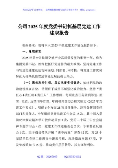 / 公司2025年度党委书记抓基层党建工作述职报告