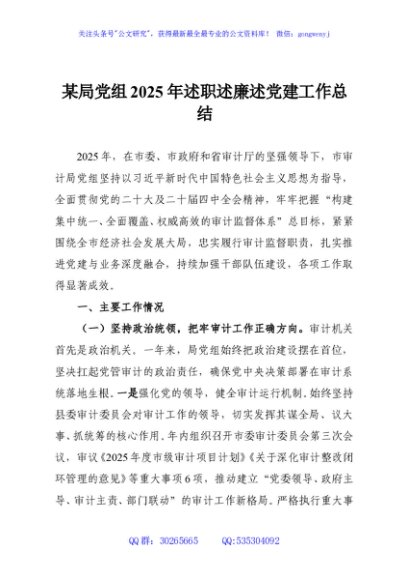 / 某局党组2025年述职述廉述党建工作总结