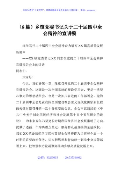 (8篇)乡镇党委书记关于二十届四中全会精神的宣讲稿