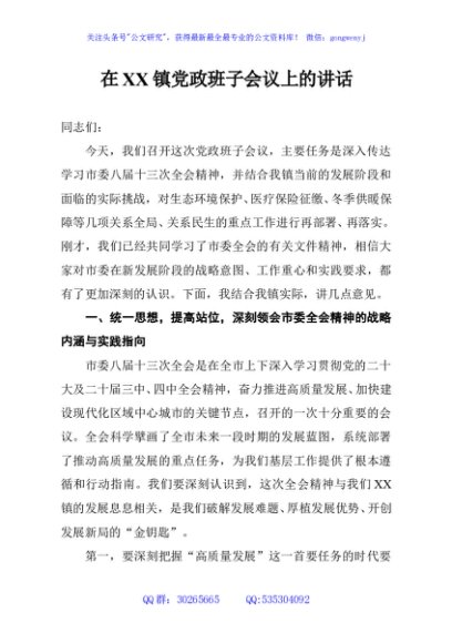 在XX镇高层建筑领域冬季安全隐患排查会议上的讲话
