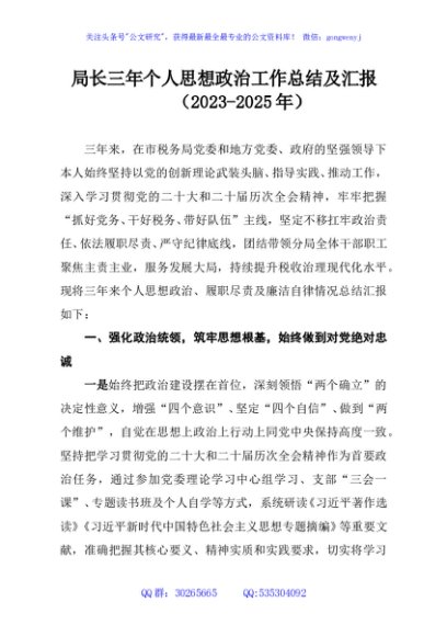 / 局长三年个人思想政治工作总结及汇报(2023-2025年)