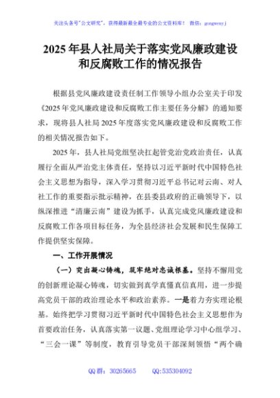 / 2025年县人社局关于落实党风廉政建设和反腐败工作的情况报告