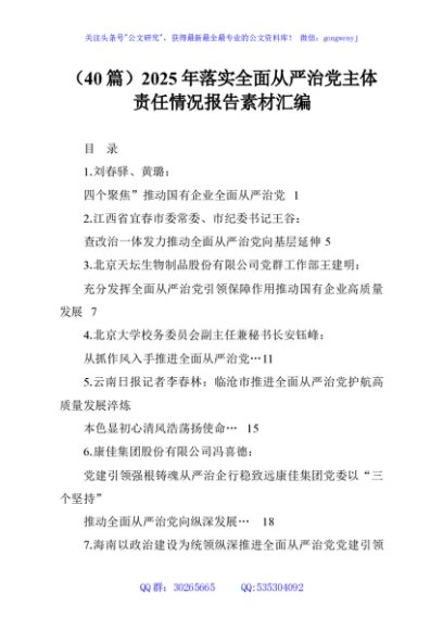 / (40篇)2025年落实全面从严治党主体责任情况报告素材汇编