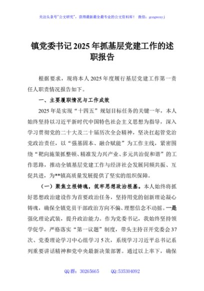 / 镇党委书记2025年抓基层党建工作的述职报告