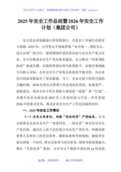 / 2025年安全工作总结暨2026年安全工作计划(集团公司)
