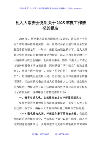 / 县人大常委会党组关于2025年度工作情况的报告