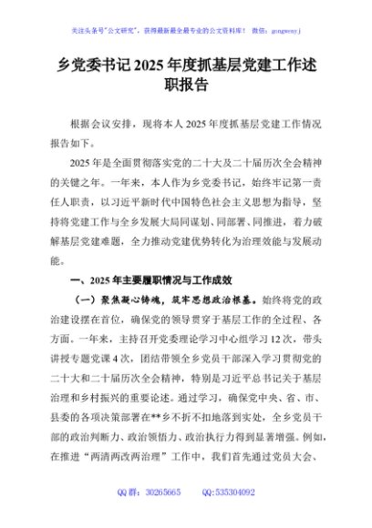 / 乡党委书记2025年度抓基层党建工作述职报告