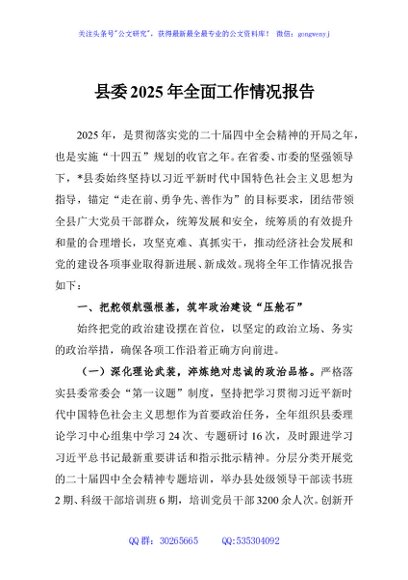/ 县委2025年全面工作情况报告
