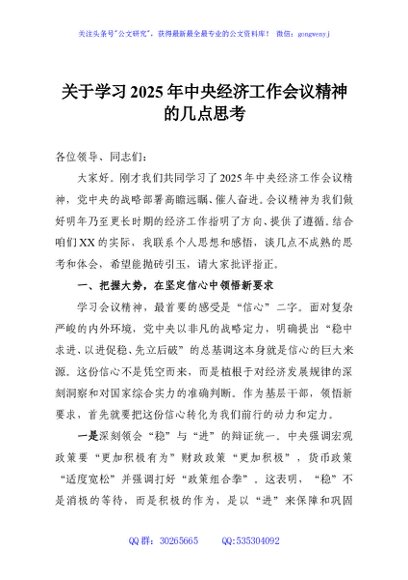 / 关于学习2025年中央经济工作会议精神的几点思考