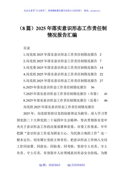 / (8篇)2025年落实意识形态工作责任制情况报告汇编
