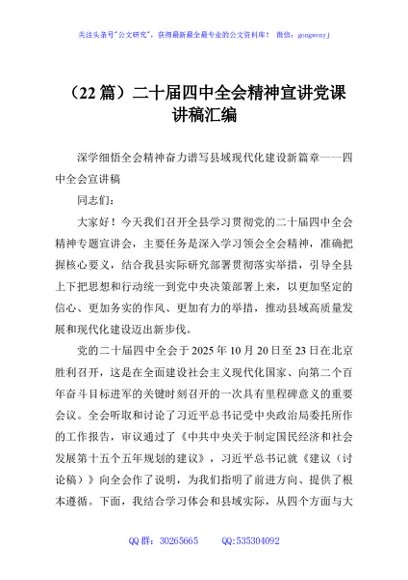 / (22篇)二十届四中全会精神宣讲党课讲稿汇编