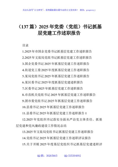 / (137篇)2025年党委(党组)书记抓基层党建工作述职报告