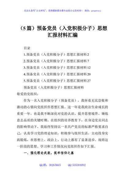 (5篇)预备党员 (入党积极分子)思想汇报材料汇编