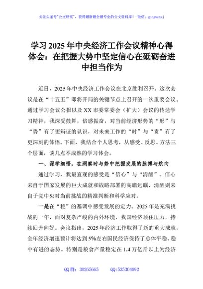 / 学习2025年中央经济工作会议精神心得体会:在把握大势中坚定信心在砥砺奋进中担当作为