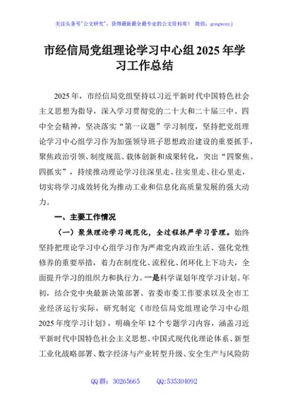 / 市经信局党组理论学习中心组2025年学习工作总结