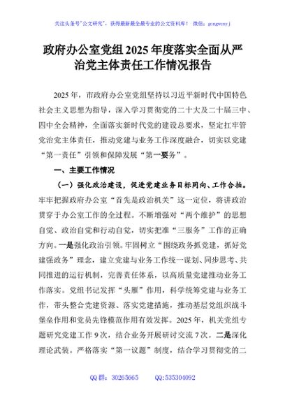 / 政府办公室党组2025年度落实全面从严治党主体责任工作情况报告