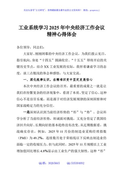 / 工业系统学习2025年中央经济工作会议精神心得体会