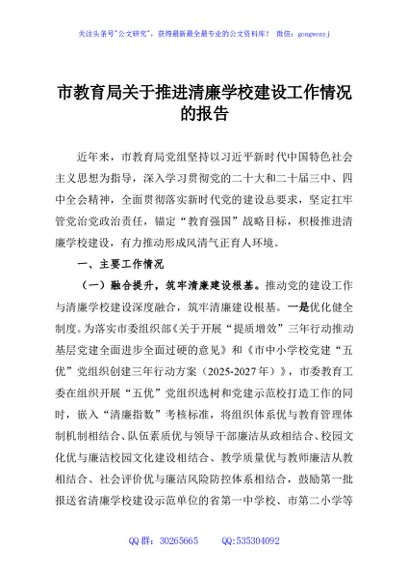 / 市教育局关于推进清廉学校建设工作情况的报告