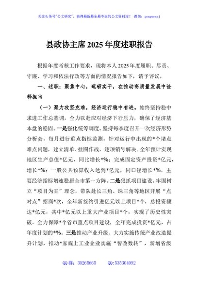 / 县政协主席2025年度述职报告