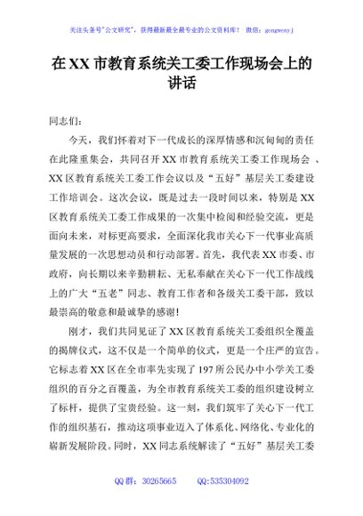 / 在XX市教育系统关工委工作现场会上的讲话