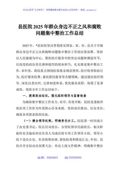 / 县医院2025年群众身边不正之风和腐败问题集中整治工作总结
