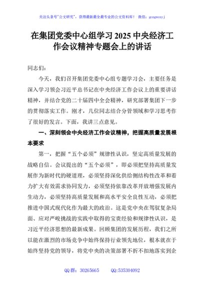 / 在集团党委中心组学习2025中央经济工作会议精神专题会上的讲话