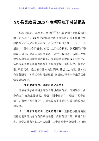 / XX县民政局2025年度领导班子总结报告
