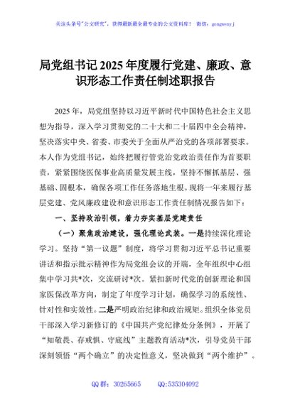 / 局党组书记2025年度履行党建、廉政、意识形态工作责任制述职报告