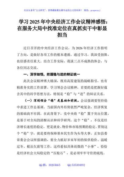 / 学习2025年中央经济工作会议精神感悟:在服务大局中找准定位在真抓实干中彰显担当