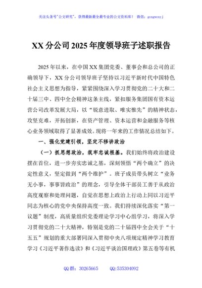 / XX分公司2025年度领导班子述职报告