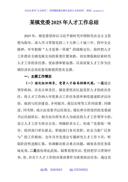 / 某镇党委2025年人才工作总结