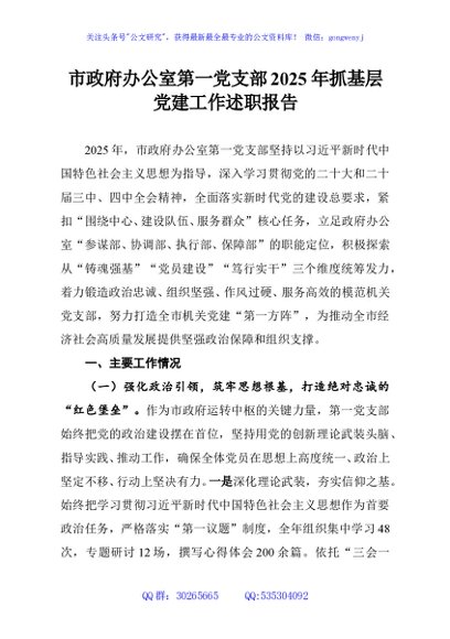 / 市政府办公室第一党支部2025年抓基层党建工作述职报告