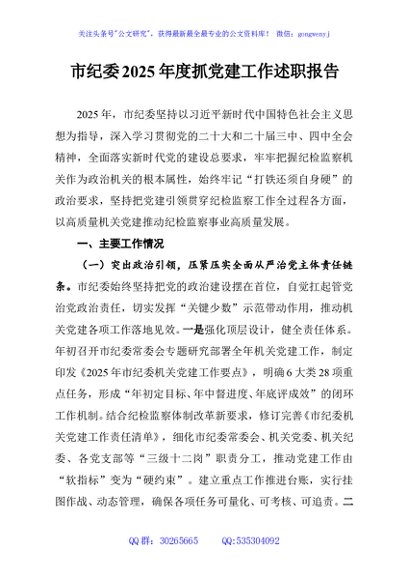 / 市纪委2025年度抓党建工作述职报告