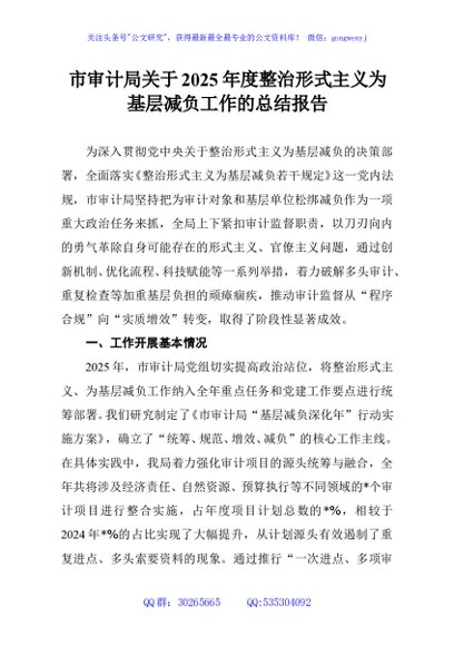 / 市审计局关于2025年度整治形式主义为基层减负工作的总结报告