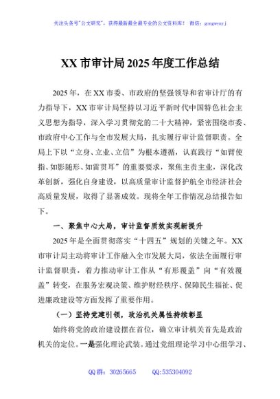 / XX市审计局2025年度工作总结