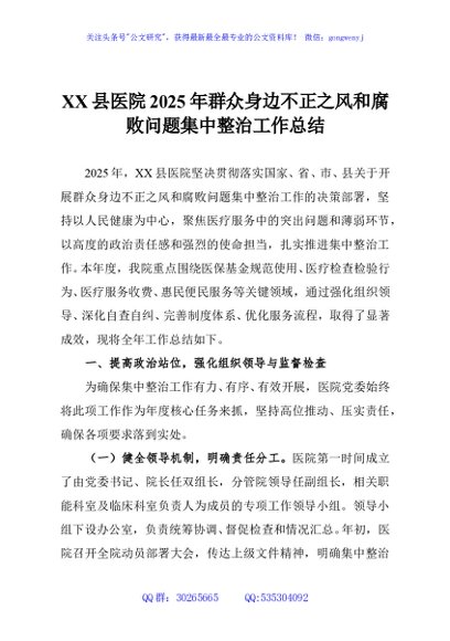 / XX县医院2025年群众身边不正之风和腐败问题集中整治工作总结