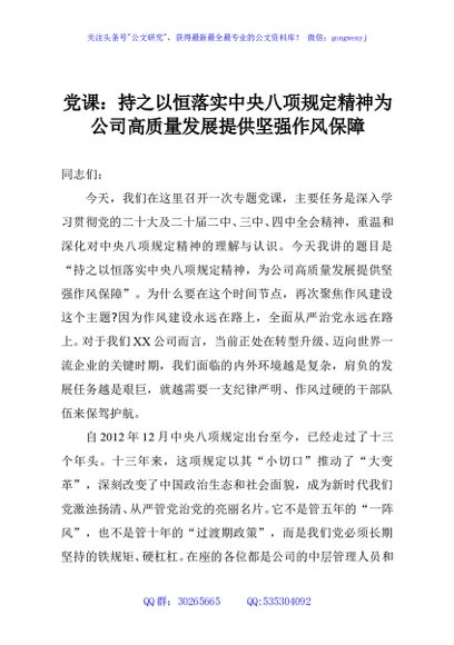 / 党课:持之以恒落实中央八项规定精神为公司高质量发展提供坚强作风保障