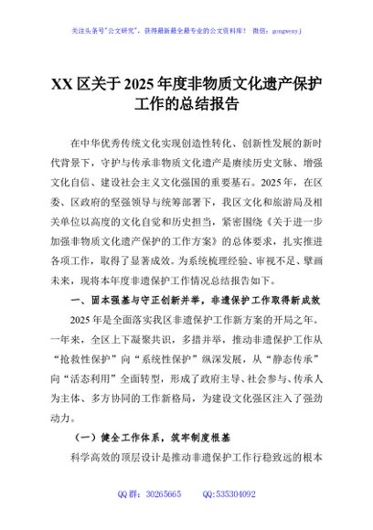 / XX区关于2025年度非物质文化遗产保护工作的总结报告