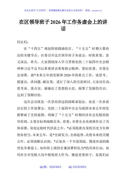/ 在区领导班子2026年工作务虚会上的讲话