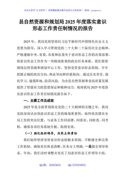 / 县自然资源和规划局2025年度落实意识形态工作责任制情况的报告
