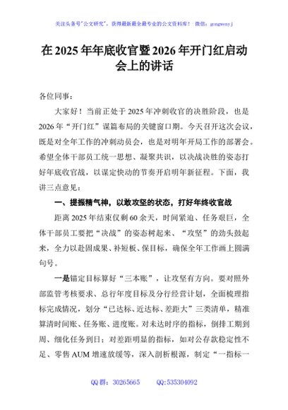 / 在2025年年底收官暨2026年开门红启动会上的讲话