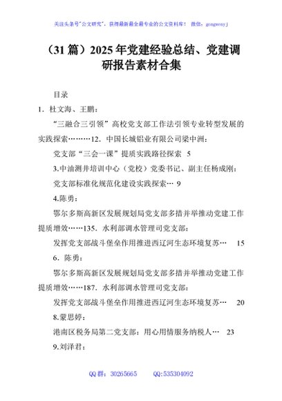 / (31篇)2025年党建经验总结、党建调研报告素材合集