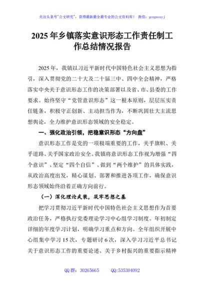 / 2025年乡镇落实意识形态工作责任制工作总结情况报告