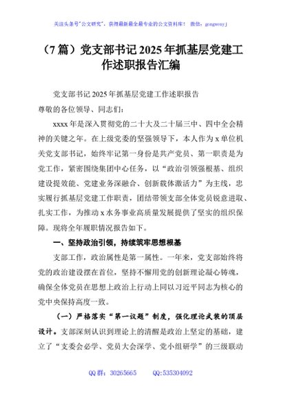 / (7篇)党支部书记2025年抓基层党建工作述职报告汇编